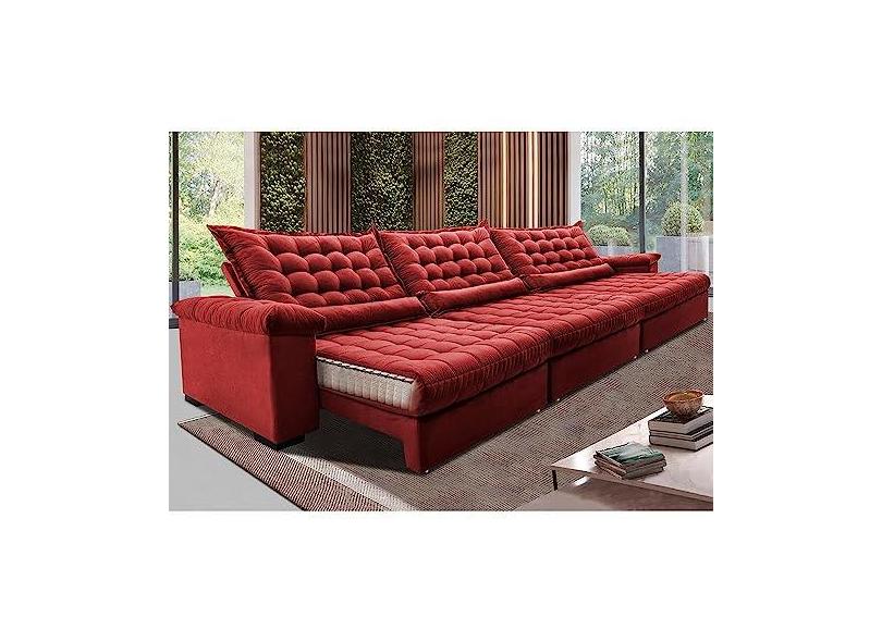 O menor preço encontrado no Brasil para Sofá Retrátil e Reclinável 4,15m Molas Ensacadas Cama Inbox Big Space com Bordado Velusoft Vermelho atualmente é R$ 5.109,00.