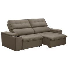 Sofá Retrátil E Reclinável 4 Lugares 250cm Zoho Porta Copos No Braço Veludo Castor G22 - Gran Belo