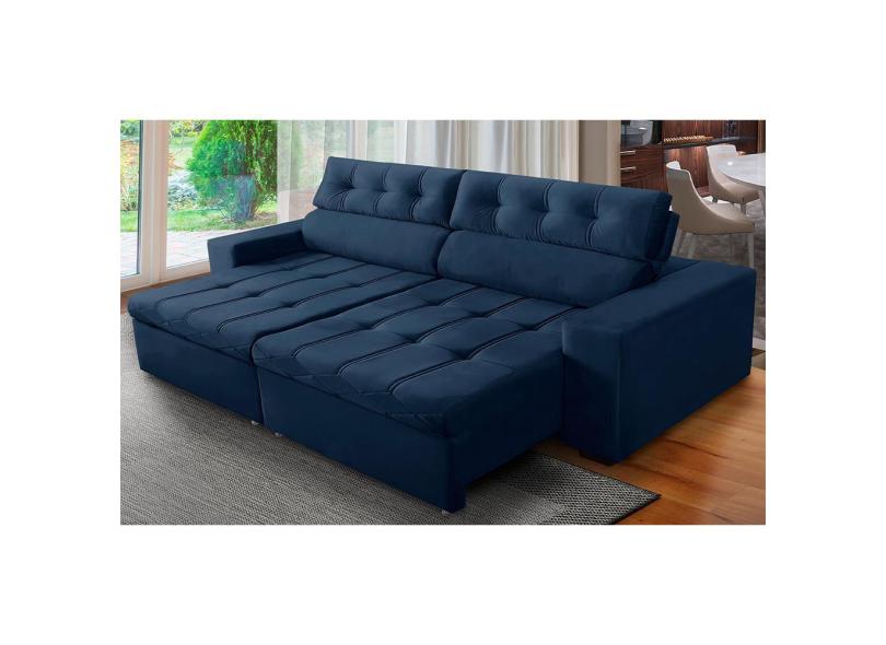 Sofá Retrátil e Reclinável 4 Lugares com Molas 2,70m Dani Suede Azul Adonai Estofados