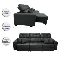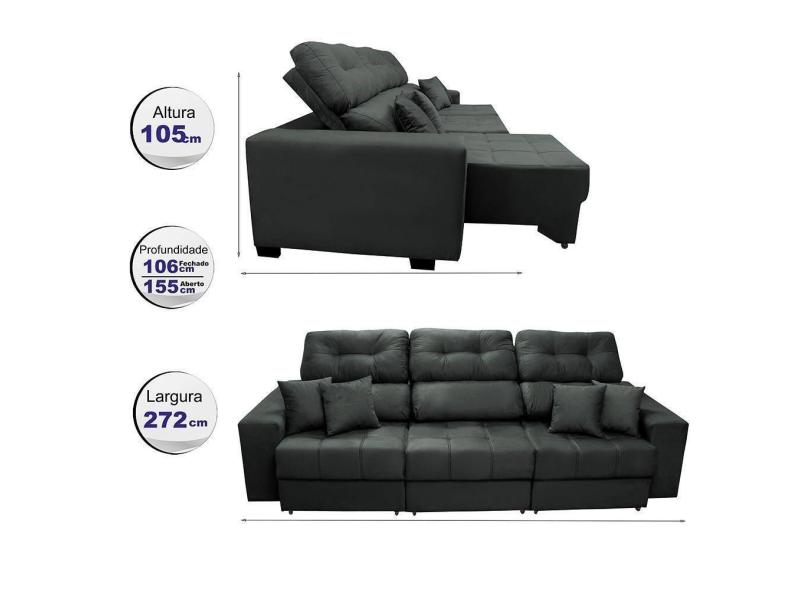 Sofá Retrátil E Reclinável Cama Inbox Diamond 2,72m Tecido Suede Velusoft Cinza