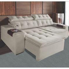Sofá Retrátil E Reclinável Carioca 2 Metros Bege-Bonequinha Móveis