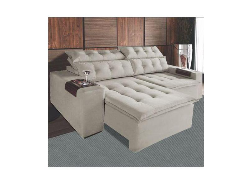 Sofá Retrátil E Reclinável Carioca 2 Metros Bege-Bonequinha Móveis