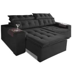 Sofá Retrátil E Reclinável Carioca 2 Metros Preto-Bonequinha Móveis