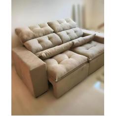 Sofá Retrátil E Reclinável Com 2,00M De Largura Em Tecido Suede Bege