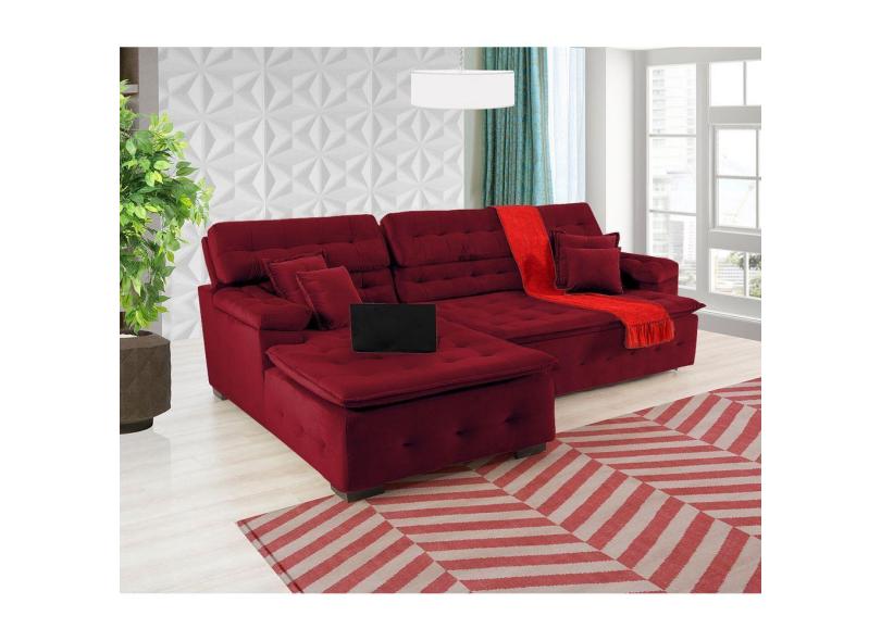 Sofá Retrátil E Reclinável Com Chaise Orlando 2.20x2.10m- Sofisticato-vinho