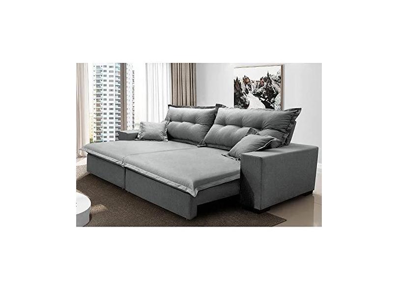 Sofá Retrátil e Reclinável com Molas Ensacadas Cama inBox Prime 2,32m Tecido Linho Cinza Claro