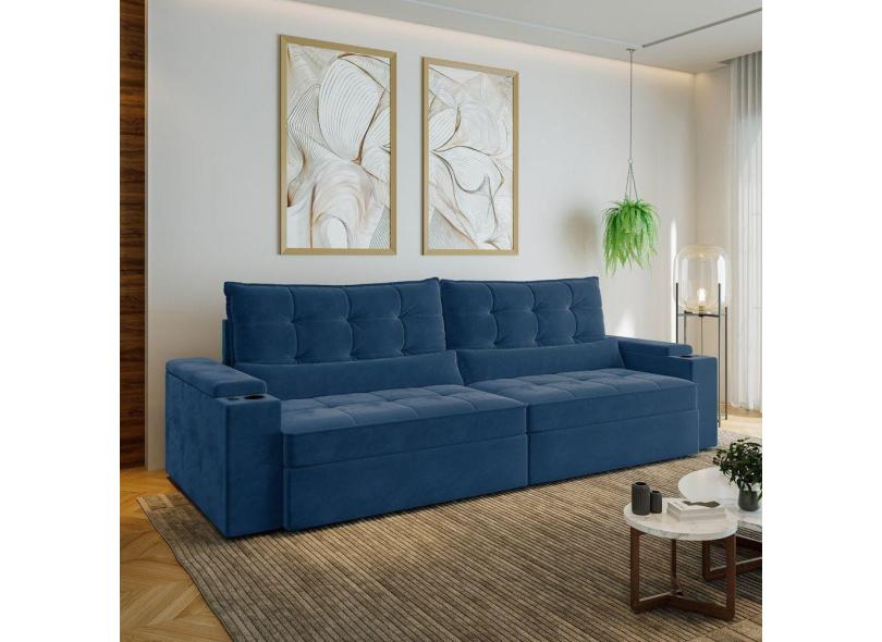 O menor preço encontrado no Brasil para Sofá Retrátil e Reclinável com Porta Copos e Usb 4 Lugares 300cm Embaúba Extra Cabecasa Madeiramadei Azul Diamante atualmente é R$ 3.670,57.