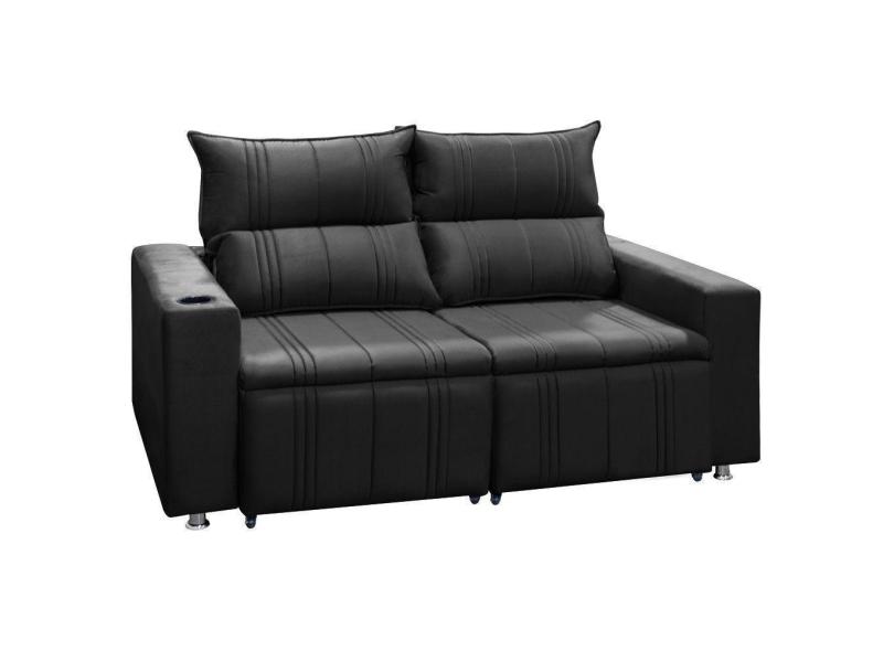 Sofá Retrátil E Reclinável Madri 2l. 160cm C/molas - Veludo Preto