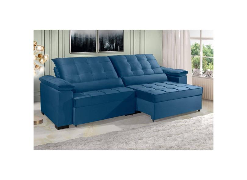Sofá Retrátil e Reclinável RENEW 2.70m ESTILO ESTOFADOS - França Velusoft Cor "Azul"