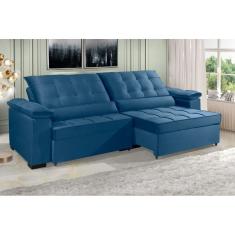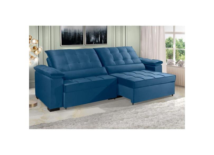 Sofá Retrátil e Reclinável RENEW 2.90m ESTILO ESTOFADOS - França Velusoft Cor "Azul"
