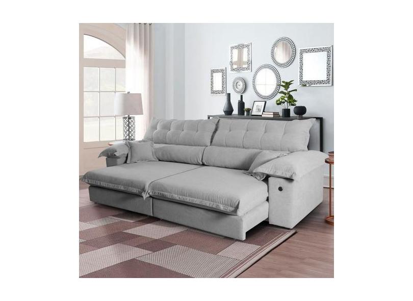 Sofá Retratil Ravena 2,60 Boucle Cinza - Hellen Estofados