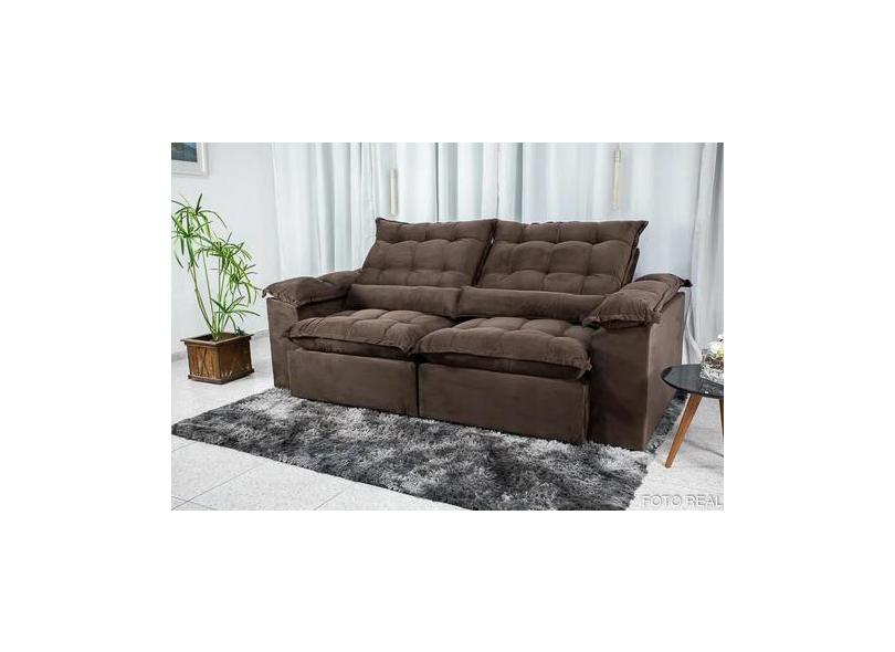 Sofá Retrátil Reclinável 2.00M Emanuelly Veludo Marrom 19 - Império De