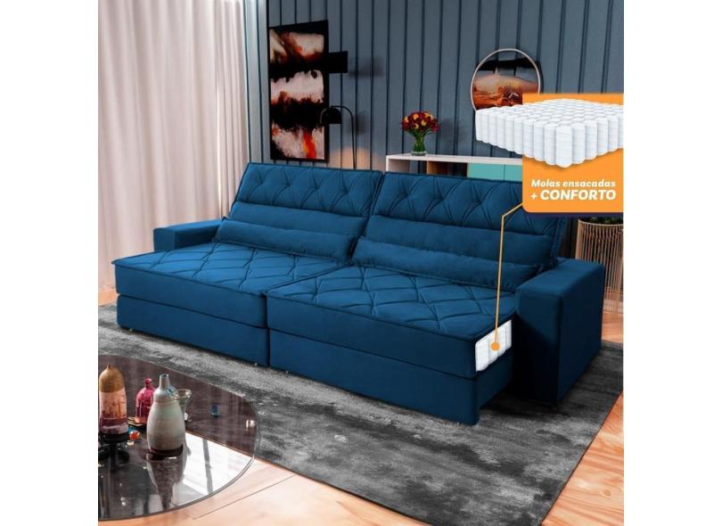 O menor preço encontrado no Brasil para Sofá Retrátil Reclinável 2,30m Albany Suede Velut Azul Marinho Molas Ensacadas - King House atualmente é R$ 2.249,90.