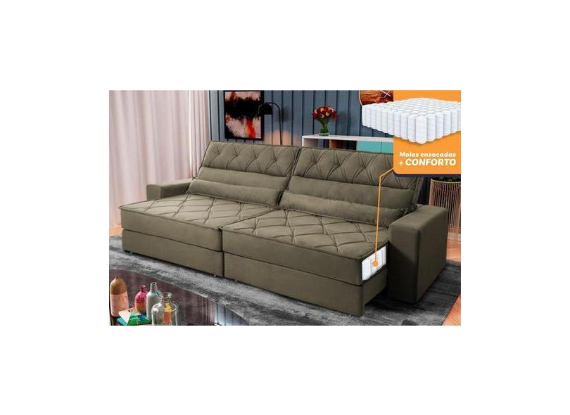 Sofá Retrátil Reclinável 2,30M Albany Suede Velut Tabaco Molas Ensacad
