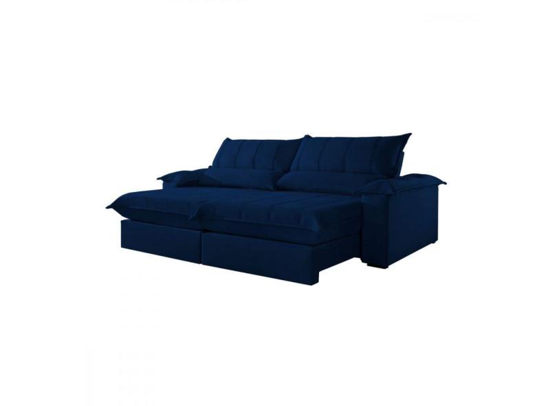 Sofá Retrátil Reclinável 2.40m Porto Bello Veludo Jolie Azul Montano