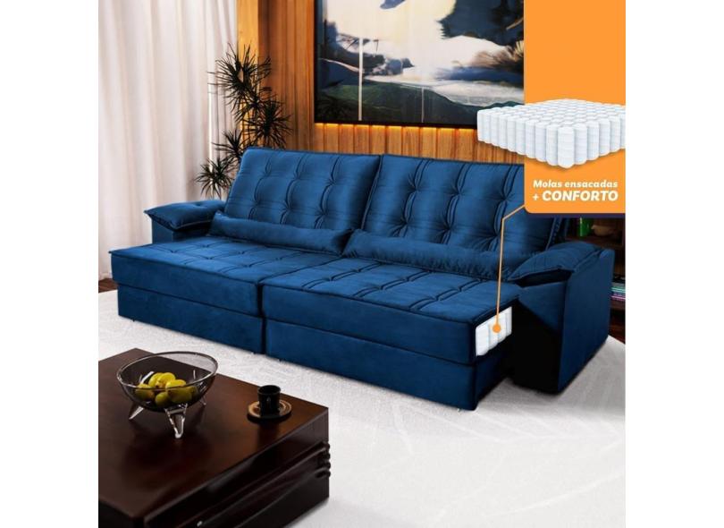 Sofá Retrátil Reclinável 2,50m Ascari Suede Velut Azul Marinho molas Ensacadas - King House