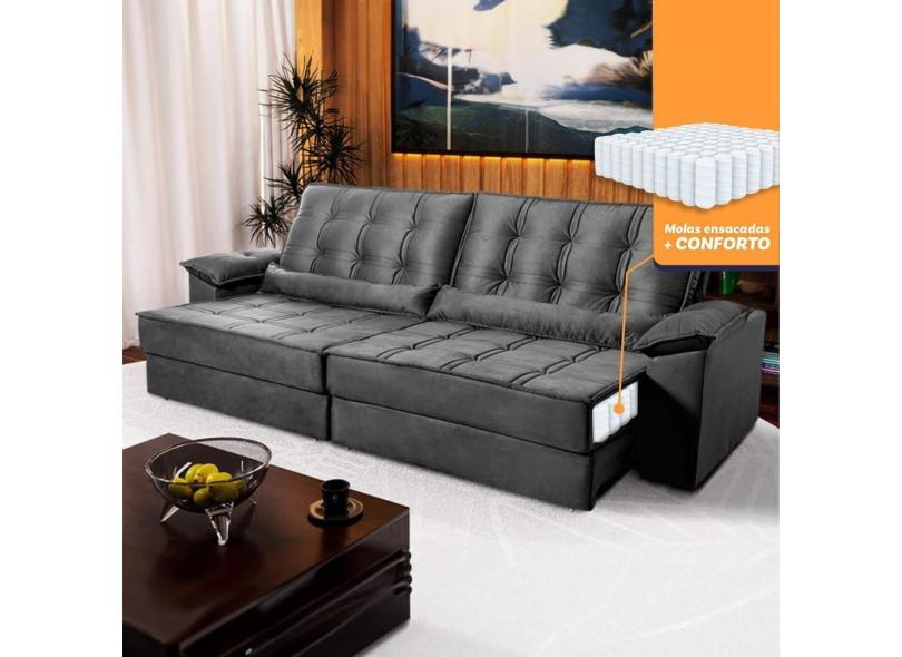 Sofá Retrátil Reclinável 2,50m Ascari Suede Velut Cinza molas Ensacadas - King House