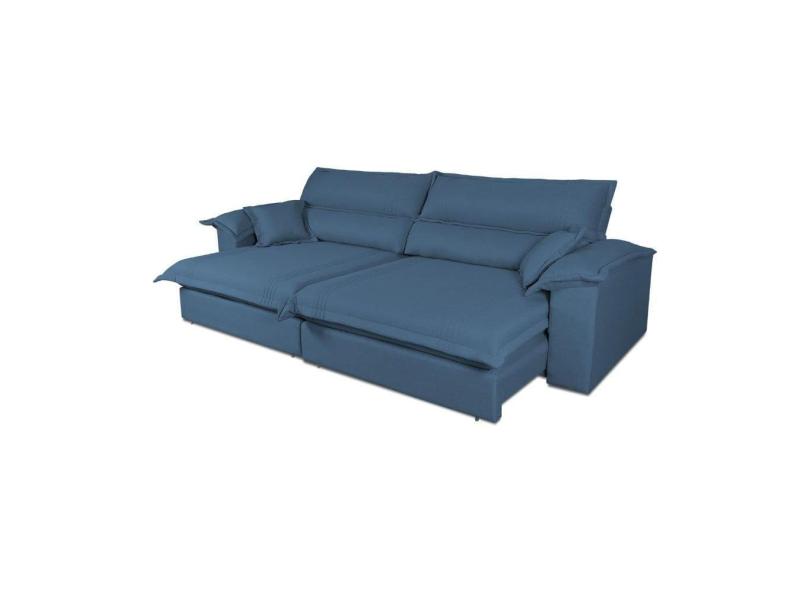 O menor preço encontrado no Brasil para Sofá Retrátil Reclinável 2,50m Nivus Azul Molas Ensacadas - King House atualmente é R$ 2.261,90.