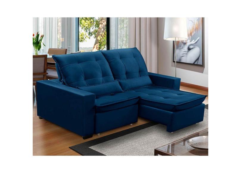 Sofa Retratil Reclinavel 2 Lugares 1,80m Atlantis Veludo Azul Marinho LansofBR