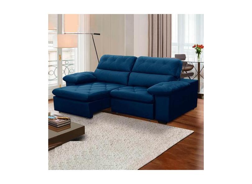 Sofa Retratil Reclinavel 2 Lugares 1,90M Crystal Veludo Azul Marinho L