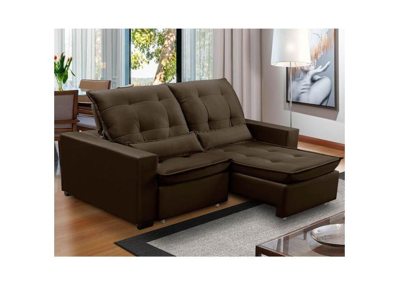 Sofa Retratil Reclinavel 2 Lugares 2,10m Atlantis Veludo Marrom LansofBR