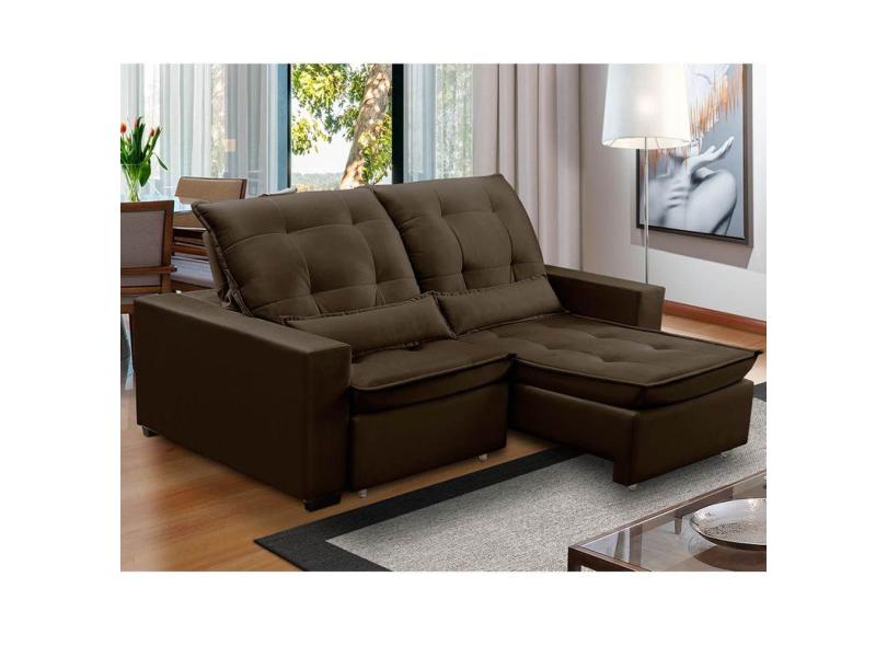 Sofa Retratil Reclinavel 2 Lugares 2,20m Atlantis Veludo Marrom LansofBR