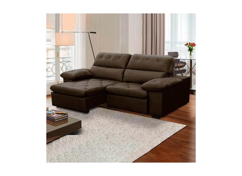 Sofa Retratil Reclinavel 2 Lugares 2,30M Crystal Veludo Marrom Lansofb