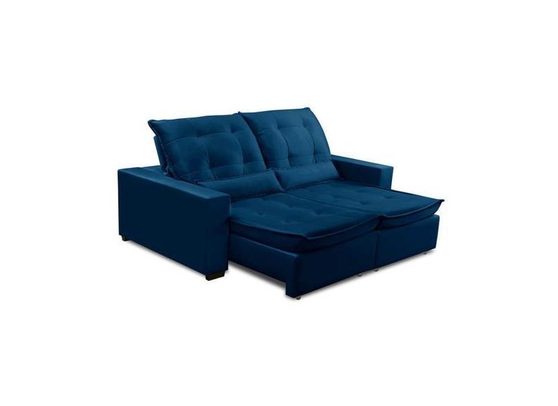 Sofa Retratil Reclinavel 2 Lugares 2,40M Atlantis Veludo Azul Marinho