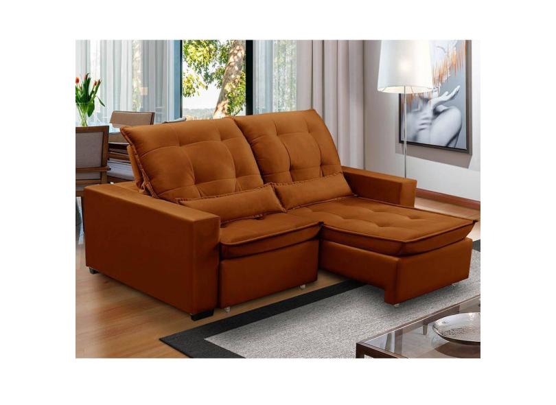 Sofa Retratil Reclinavel 2 Lugares 2,60m Atlantis Veludo Laranja LansofBR