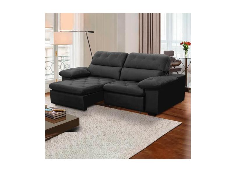Sofa Retratil Reclinavel 2 Lugares 2,60m Crystal Veludo Grafite Lansof