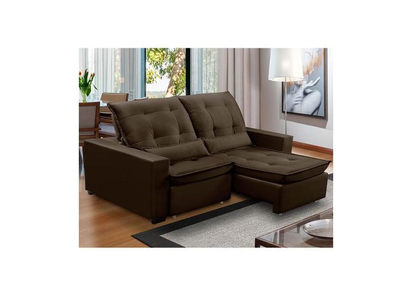 Sofa Retratil Reclinavel 2 Lugares 2,70M Atlantis Veludo Marrom Lansof