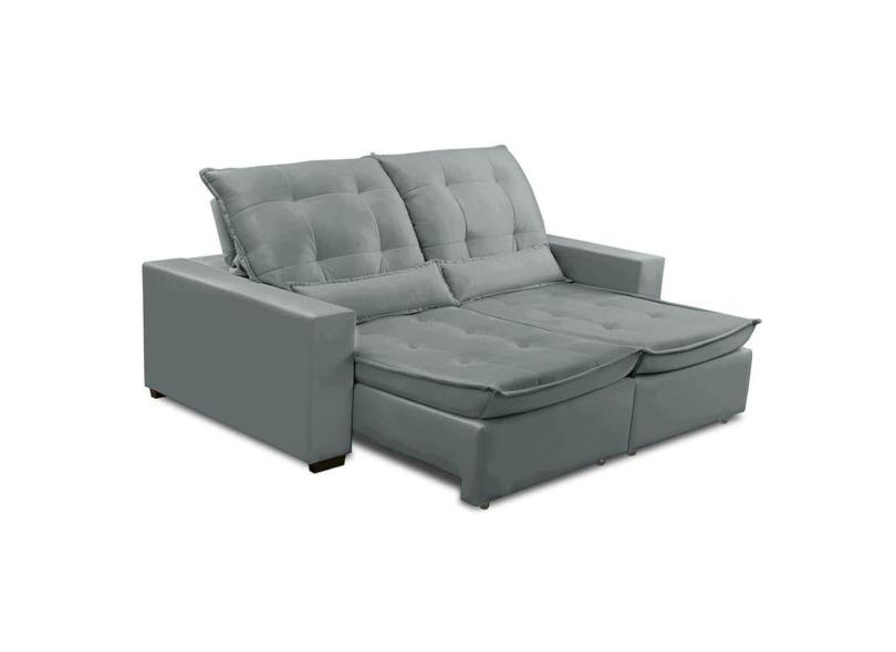 Sofa Retratil Reclinavel 2 Lugares 2,80m Atlantis Veludo Cinza Lansofbr