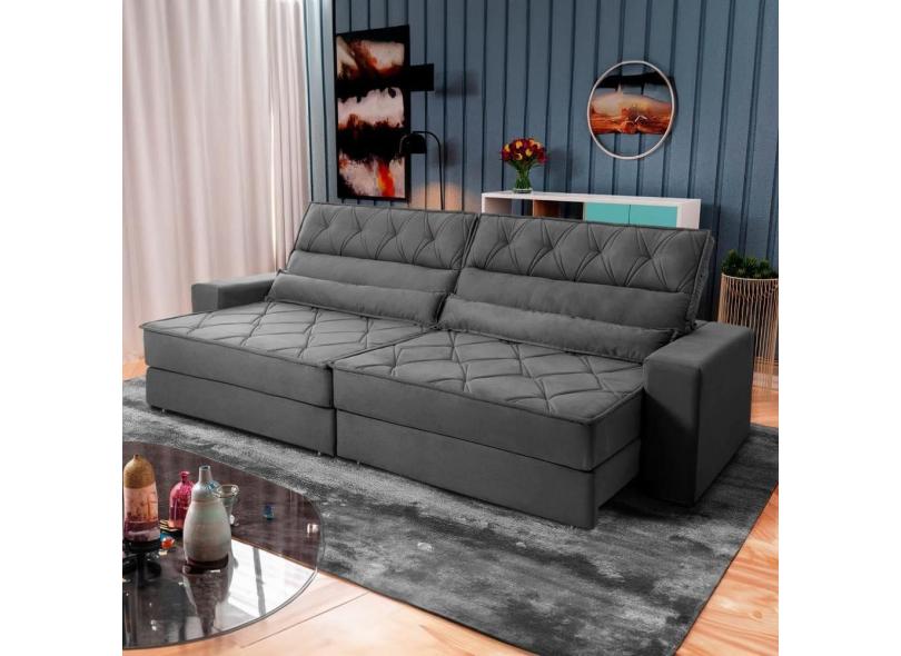 Sofá Retrátil Reclinável 3,00m Albany Suede Velut Cinza Molas Ensacadas - King House