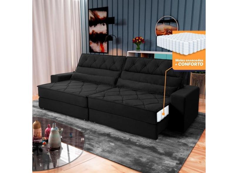 Sofá Retrátil Reclinável 3,00m Albany Suede Velut Preto Molas Ensacadas - King House