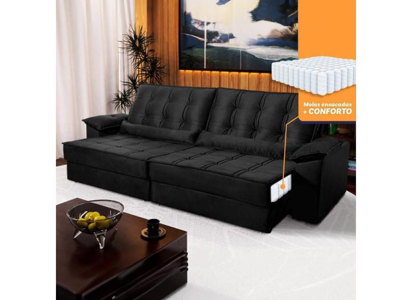 Sofá Retrátil Reclinável 3,00m Ascari Suede Velut Preto molas Ensacadas - King House