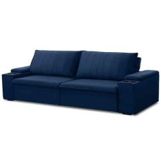Sofá Retrátil Reclinável 3 Lugares 245cm Baluart F05 Veludo Azul - Mpo