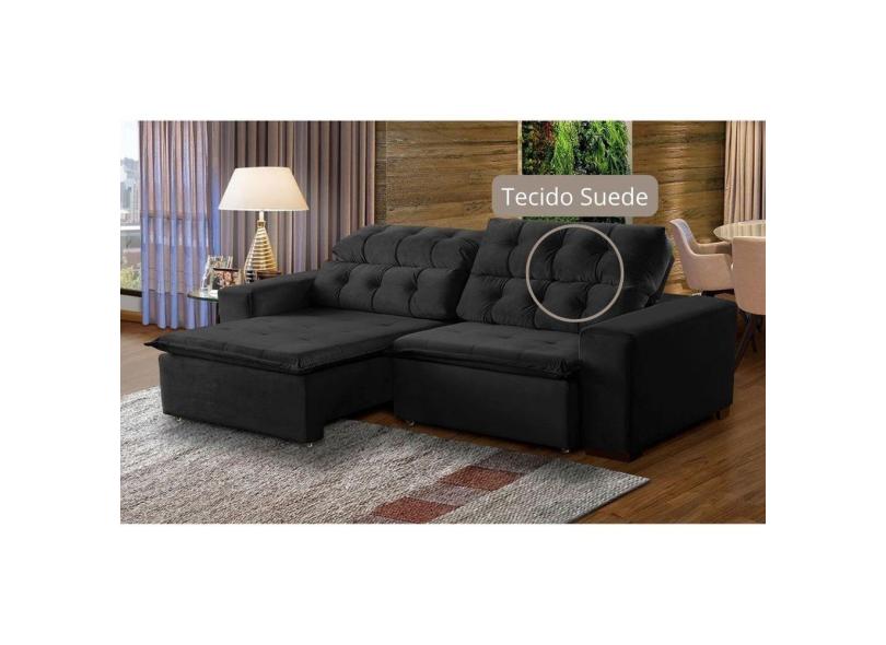Sofá Retrátil Reclinável 6Lugares 2,9m Suede Preto Megasul