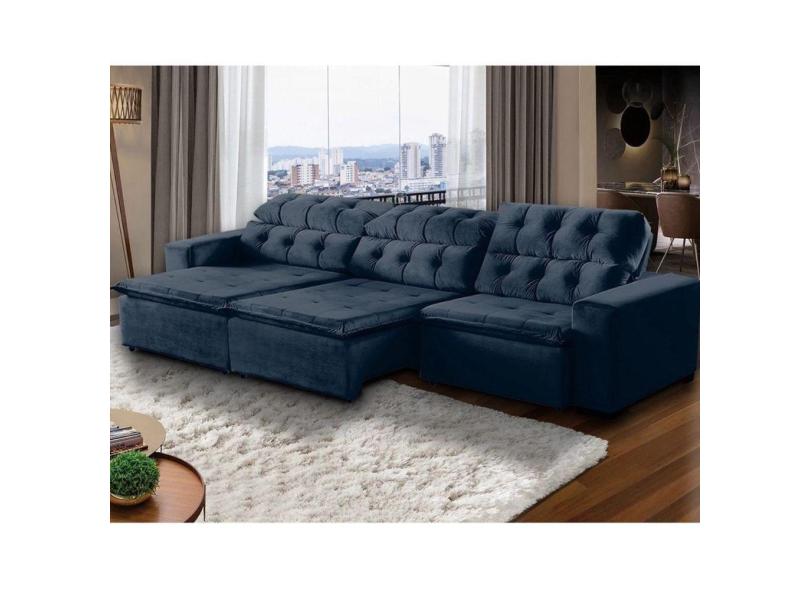 Sofá Retrátil Reclinável 9 Lugares 410cm Veludo Azul Megasul