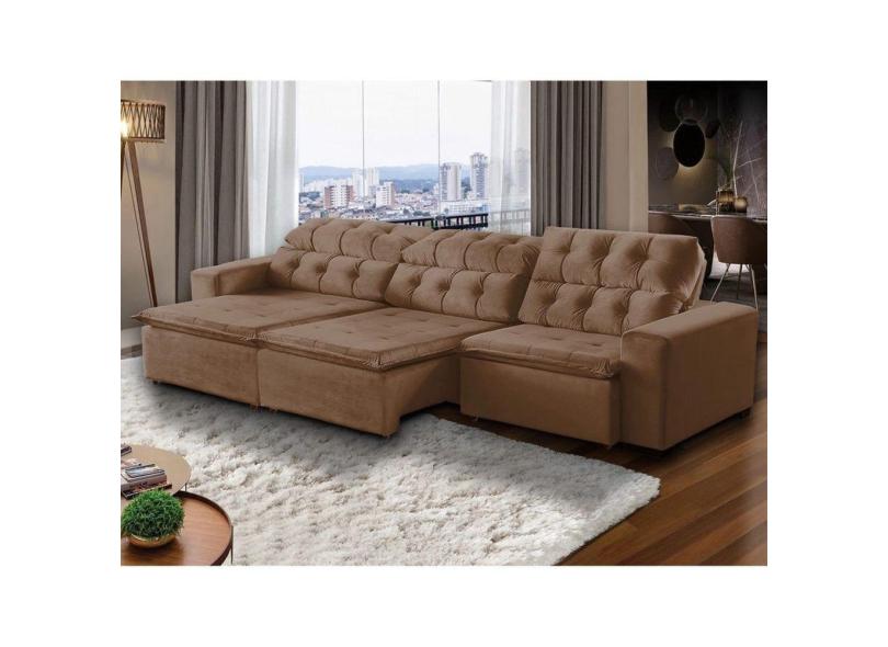 Sofá Retrátil Reclinável 9Lugares 4,1m Veludo Marrom Megasul