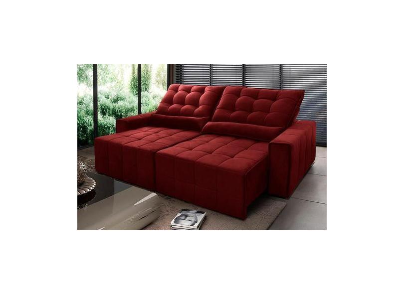Sofá Retrátil Reclinável Alaska 2,30M Suede Velut Vermelho Molas No As