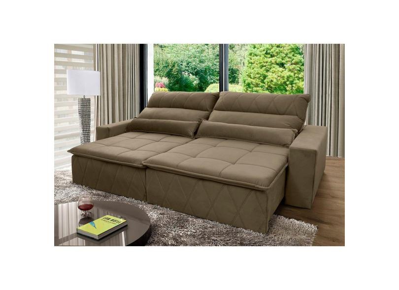 Sofá Retrátil Reclinável Amsterdam 2,70m Suede Velut Bege c/ Molas no Assento - King House