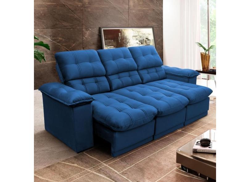 Sofá Retrátil Reclinável Atenas 2,30m Suede Velut Azul Marinho Molas no Assento - King House