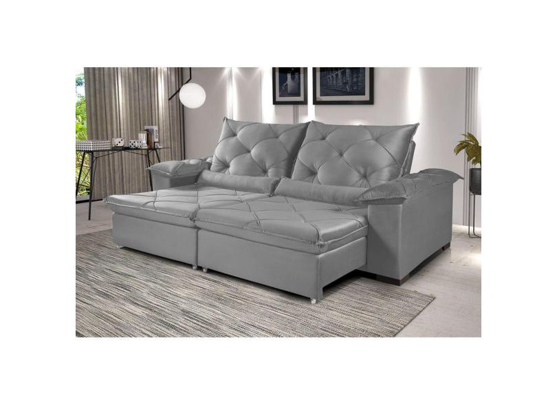 Sofá Retrátil Reclinável ATENAS 2.90m ESTILO ESTOFADOS - França Velusoft COR "PRATA"
