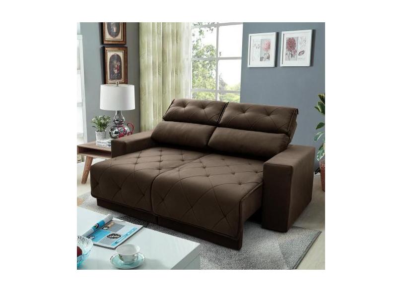 Sofá Retrátil/Reclinável Belga 1,80M Suede Velut Marrom C/ Molas No As