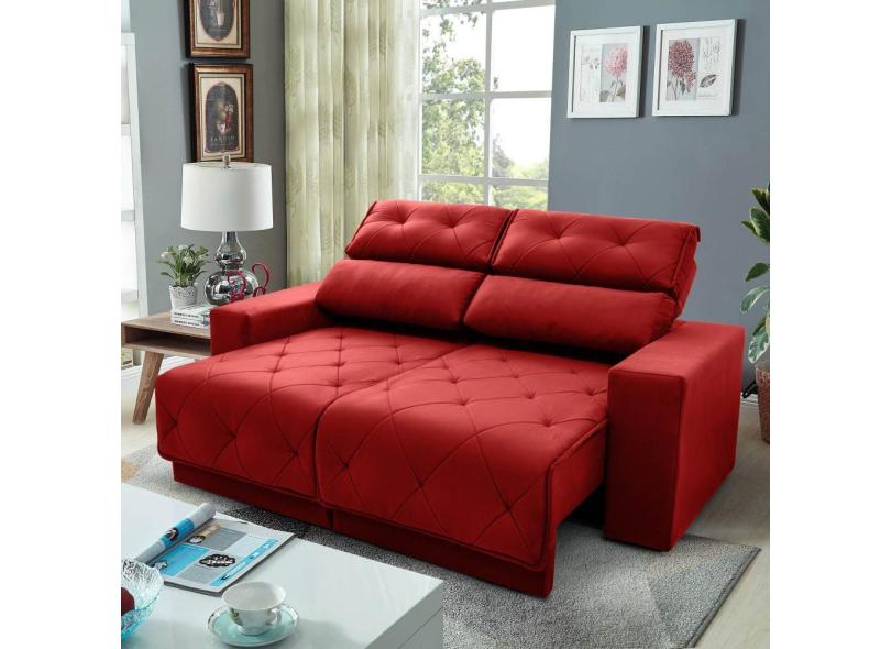 Sofá Retrátil Reclinável Belga 1,80m Suede Velut Vermelho c/ Molas no Assento - King House