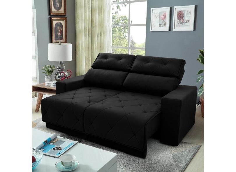 Sofá Retrátil Reclinável Belga 2,00m Suede Velut Preto c/ Molas no Assento - King House