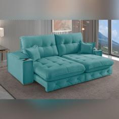 Sofá Retrátil Reclinável com Porta Copos 190cm Istambul Yescasa Pistache