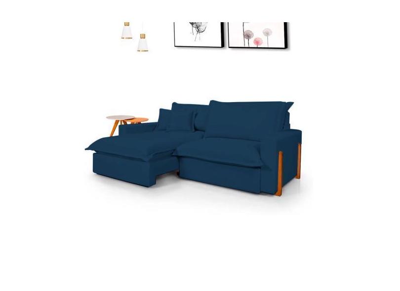 Sofá Retrátil Reclinável Davi Com Molas Ensacadas No Assento Tecido Az