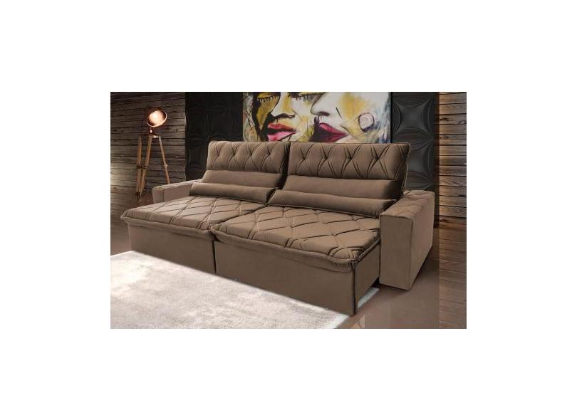 Sofá Retrátil/Reclinável França 2,30m Suede Velut Bege c/ Molas no Ass