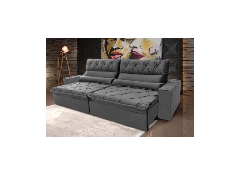 Sofá Retrátil/Reclinável França 2,30M Suede Velut Cinza C/ Molas No As